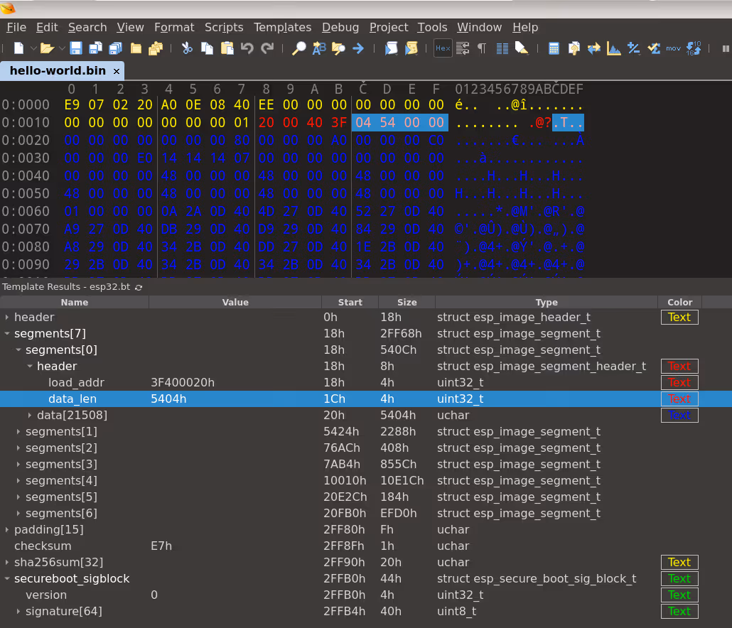 If we’re going to be manipulating segment load address information, we’ll need to learn a little about the application image format - which is fortunately very well documented in App Image Format.The author also created an 010 Editor Template which can be found here, and is useful for quickly navigating around the image segments in a hex editor and having a colourful visualisation of what’s happening.