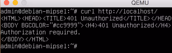 The following screenshot shows what it looks like running the httpd in our emulated environment: